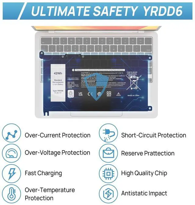 COMPATIBLE PART NUMBERS- For Dell 42Wh Battery: YRDD6 0YRDD6 VM732 0VM732 1VX1H 01VX1H 1VX1H96 P93G 8JF5PW2 P93G001 P75F