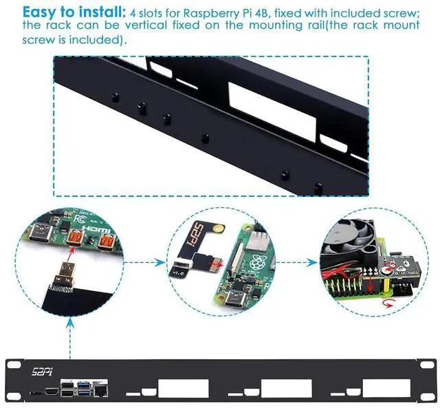 19 Rackmount is for Raspberry Pi 4B only, and each rackmount can hold 4 PCs Raspberry Pi 4B.