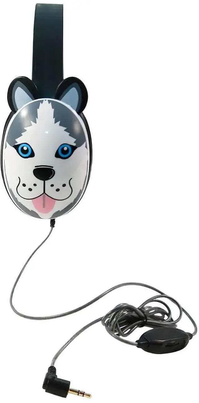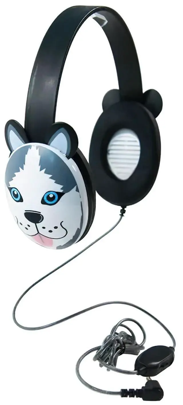 2810-HUS Listening First Headphones, Husky Motif; Adjustable and Flexible Headband; Slotted Baffles in Ear Cups; 3.5 mm Plug; 5.5 -foot Attached Cord; Inline Volume Control