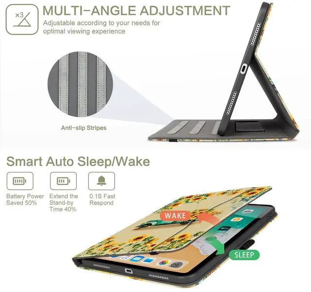 Lalumix for iPad (A16) 11Th/10Th Generation Case 2025/2022, for iPad Case 11Th/10Th Generation, 10Th/11Th Gen iPadCase Cover Pencil Holder/Hand Strap/Pocket/Adjustable Stand, Sunflower Truck