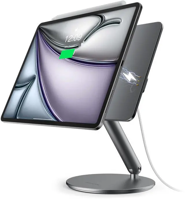 Magnetic iPad Wireless Fast Charging Stand: Say goodbye to cluttered cables, make your desk clean.Our upgraded magnetic iPad charger stand now features a Pin smart connector and a USB-C port for seamless charging. Simply place your iPad on the magnetic stand and connect the USB-C charging cable to enjoy up to 18W wireless fast charging. Keep your iPad powered up and ready whenever you need it. Special Note: The charging function is not compatible with iPadOs Beta series.