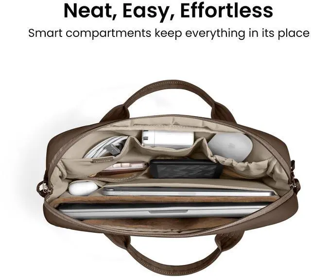 Neat, Effortless Layout: More than just a laptop briefcase, it's a smart design with separate interior compartments for your laptop, tablet, and pencil case, while a zippered mesh pocket keeps accessories in order. A hidden rear magnetic pocket adds quick-access convenience, making daily organization effortless