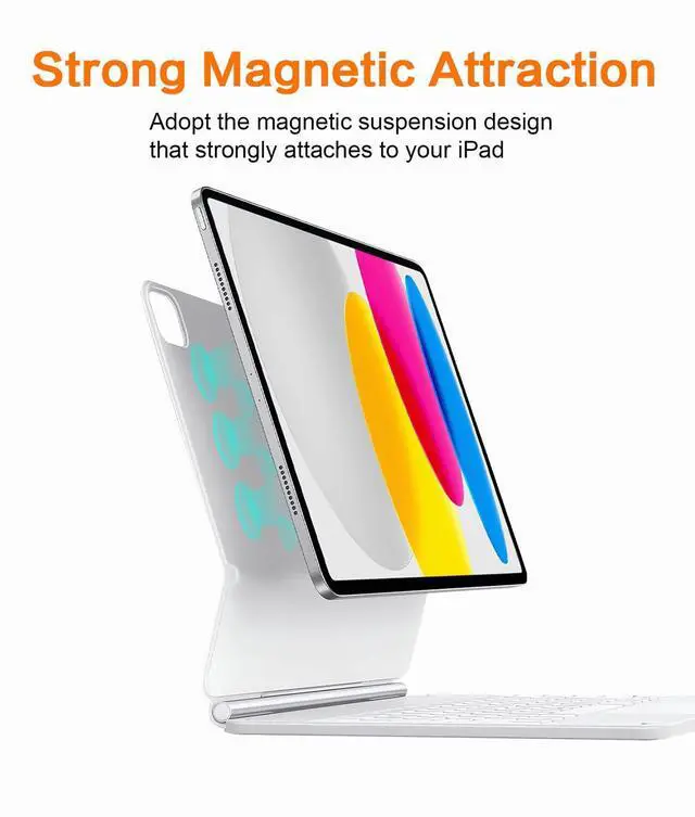 Backlit Keyboard with Adjustable Brightness: The Magic-Style Magnetic Keyboard Case for iPad 10th Generation 10.9-inch 2022/2025 iPad (A16) 11th generation 11-inch features 7 vivid colors with 3 brightness levels, allowing you to work seamlessly day and night.Choose backlighting to create a typing environment that suits your style and preferences. Improve visibility and reduce eye strain.