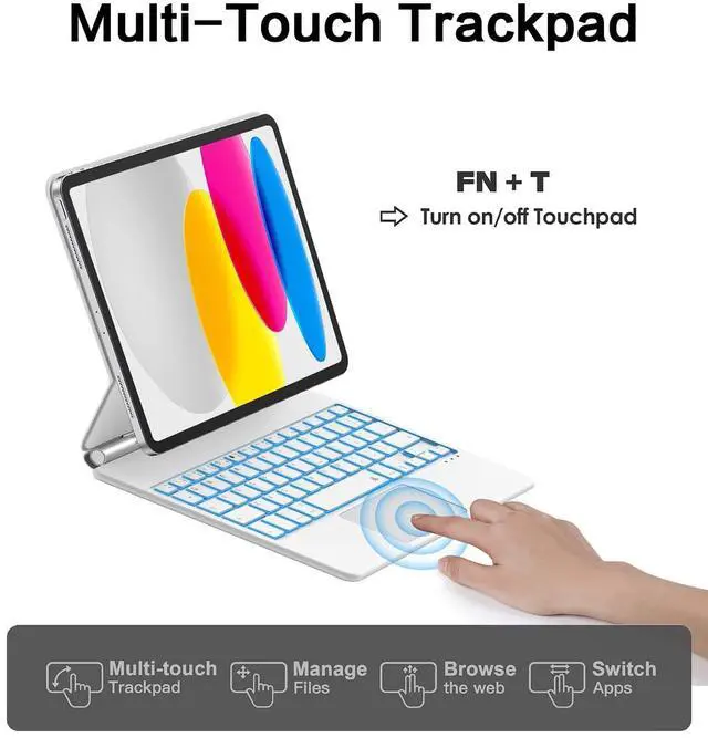 Magic Keyboard Case for iPad 11th (A16, 2025)/10th Generation 2022, Magnetic Stand with Multi-Touch Trackpad, iPad 10.9-inch 10th Gen /11th Gen Keyboard Case, Floating Cantilever Stand,Backlit,White