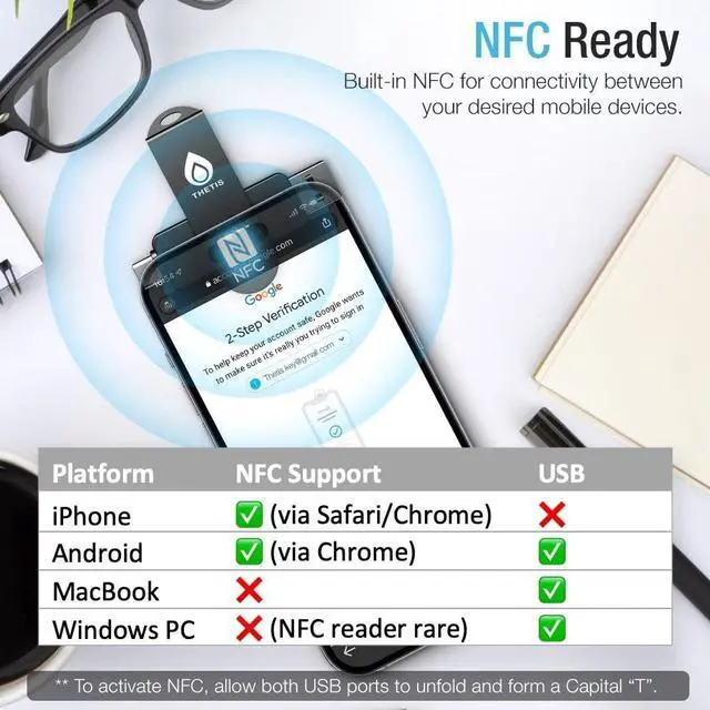 Work well with both USB-A and USB-C ports and Near Field Communication, the NFC tech means that instead of plugging it in, you can just tap the key against the right devices to activate the authentication.