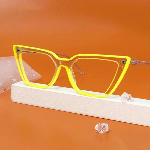 Zeelool Stylish Acetate Oversized Cat Eye Glasses for Women with Non-prescription Clear Lens Yosef WA609979-04 Yellow