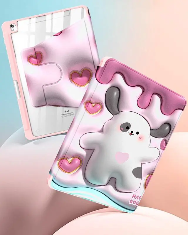 Uppuppy for iPad 9th/8th/7th/Air 3rd Generation Case 10.2& for iPad Pro 10.5 Inch Cases 360 Degree Rotating Stand Folio Cover with Pencil Holder Cute Girly Kawaii Dogs for Apple iPad 2021/2020/2019