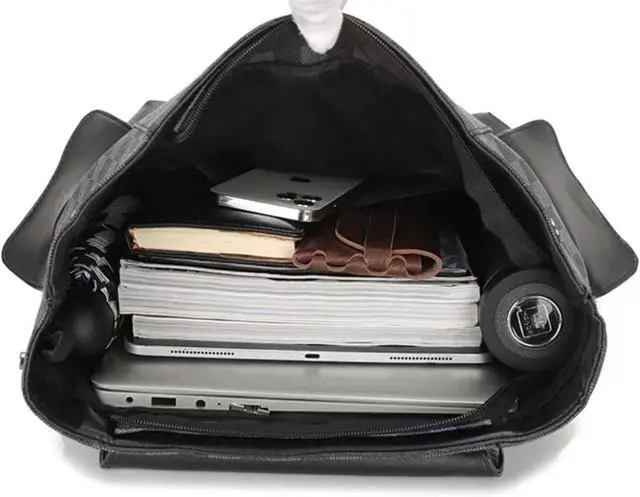 Black Leather Backpack School College Bookbag Laptop Backpack business travel Multifunctional backpack