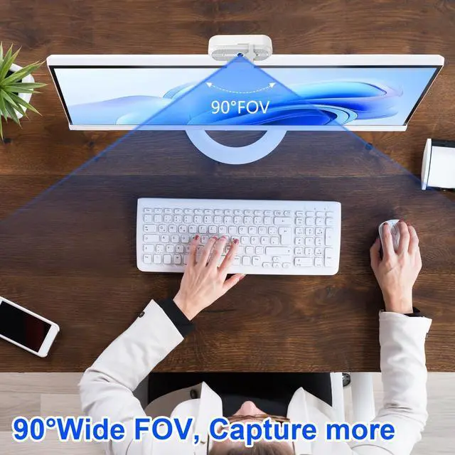 2K 30FPS: with a QHD 2k camera and a 90°wide-angle lens, this webcam delivers crystal clear images and smooth video at 30FPS. Whether you're gaming, video calling, online meeting, live streaming, or recording, this webcam ensures exceptional visual quality.
