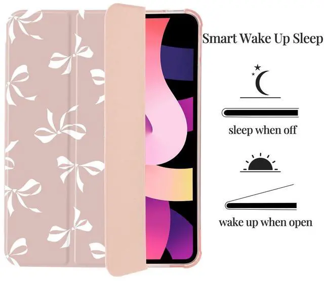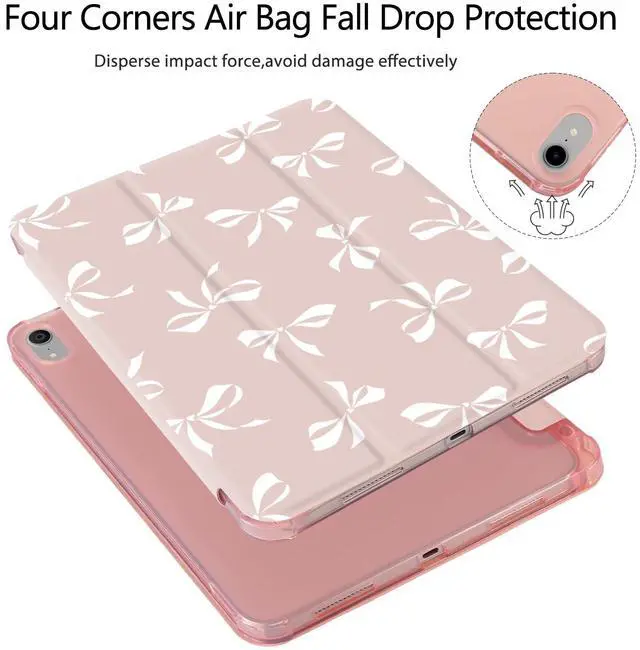 Girly White Bow Tie Case for iPad 11 inch (A16 Chip) 2025 Generation 11th/iPad 10.9 inch 2022 10th Gen with Pencil Holder and Auto Sleep/Wake,Pink Leather Soft TPU Back Shell Stand Cover