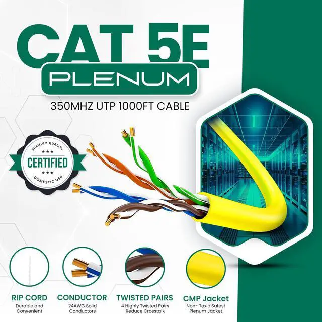 COMPATIBLE WITH INDOOR USE: CMP-rated 1000ft Cat 5e ethernet cable features a durable jacket ideal for indoor use. Made from LSZH materials, the jacket of the Cat5e Plenum Ethernet Cable is thick, safe, and everlasting.