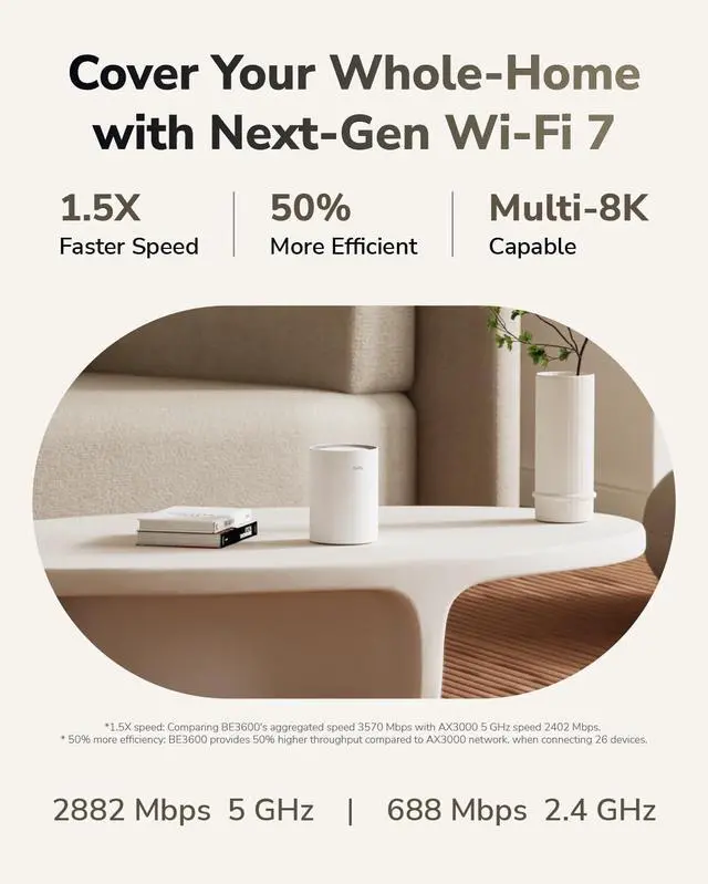 Seamless Roaming: M3600 creates a unified network with a single network name and uses the newest technology for seamless streaming, adapting through advanced algorithms as you move throughout your home.