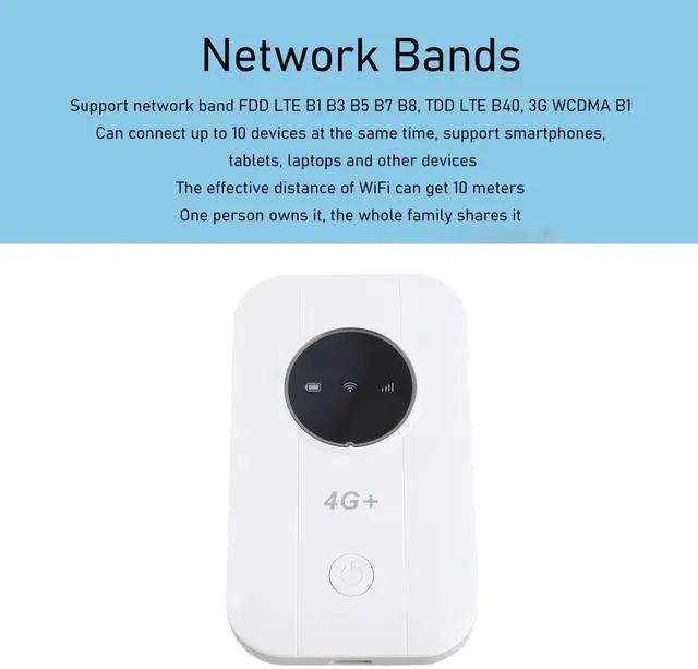 NETWORK BAND: This 4G LTE USB Modem supports network band FDD LTE B1 B3 B5 B7 B8, TDD LTE B40, 3G WCDMA B1. It can be connected to 10 devices at the same time, support smartphones, tablets, laptops, etc.The effective distance of the Network can get 10 meters. One person owns it, the whole family shares i