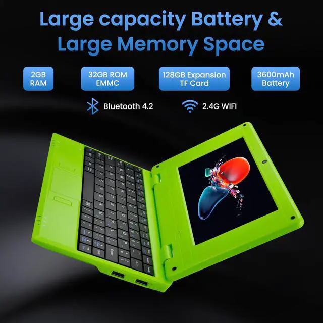 Kid-Friendly Design This 7 inch Android laptop notebook computer is specifically designed for children, providing a compact and lightweight form factor that fits perfectly in small hands and backpacks. Only 1.3 inches thickis specifically designed for children.