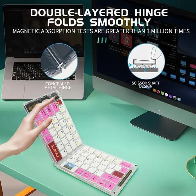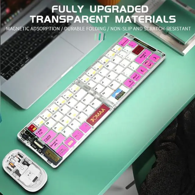 Key Features: Foldable & Ultra-Portable Design The keyboard folds into a compact size, easily fitting into your bag or pocket. The mouse is lightweight and ergonomically designed for comfortable, all-day use. Dual Connectivity Options Wireless