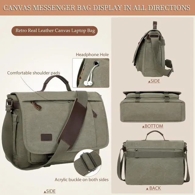 [ 2 PCS RETRO MEN'S MESSENGER BAG ] Office work bag for men is made of water repellent canvas with PU brown leather. Disordered wrinkles and scratches on surface create a vintage and wild looking. Comes with a small bag for pens, keys, mobile phone and cash, perfect for people in college, business and work.