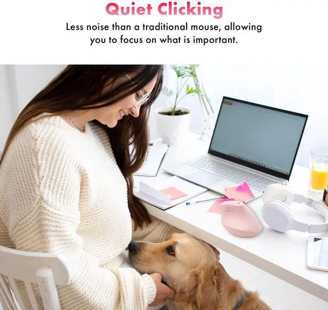 J-Tech Digital Wireless Mouse, Vertical Ergonomic Mouse with 2.4G Wireless & Bluetooth for 3 Multi-Device Function, Adjustable DPI Modes, Compatible with PC, Mac, Laptop - Pink