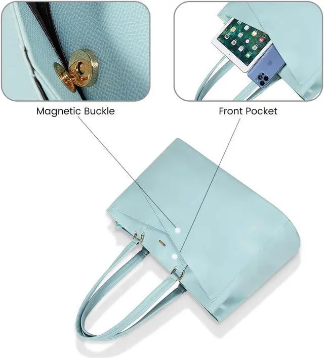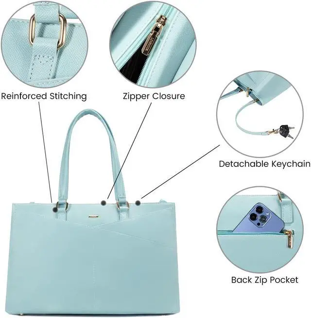 LOVEVOOK Laptop Bag for Women 15.6 Inch Tote Bags Waterproof Leather Briefcase Computer Women Business Office Work Bag, Cyan-Blue