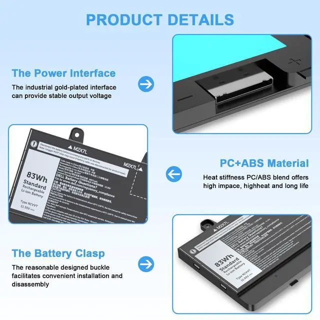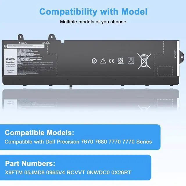 Specifications: Voltage: 11.55V, Capacity: 83Wh, Condition: 100% New, 100% Original Compatible with Dell serious battery replacement