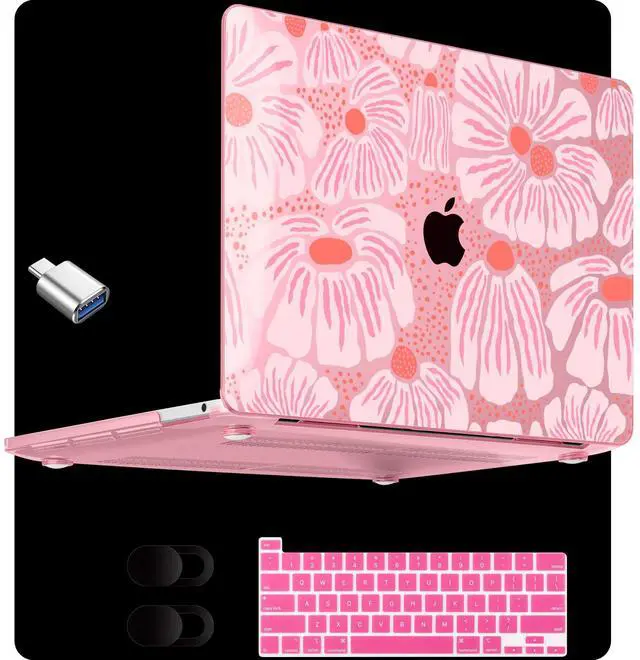 MEEgoodo for M2 MacBook Pro 13 inch Case 2022 2021 2020,Crystal Cover Fit Model A2338 M2/M1 A2251 A2289,Clear Case for 13.3-inch Laptop,Hard Shell for MacBook Pro M2, Pink Style Floral