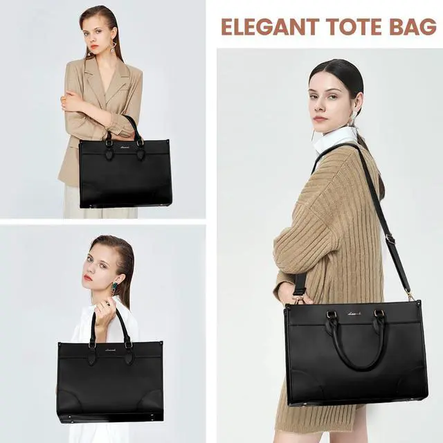 Elegant Laptop Tote Bag for Women: The Computer Handbag Shoulder Bag interior is thoughtfully designed with multiple compartments. The laptop pursue built-in padded laptop compartment fits up to a 15.6" laptop, featuring a thick protective foam pad and a secure velcro strap to ensure optimal protection for your device.