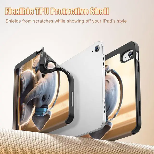 Tuiklol Case for iPad 11 inch (A16 Chip) 2025 Generation 11th / iPad 10.9 inch 2022 10th Generation,Slim Stand Hard Case Pencil Holder with TPU Back Cover & Trifold Stand & Auto Wake/Sleep, Elephant