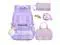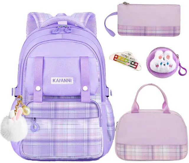 6Pcs Kawaii Backpack Set, Purple Bookbag Plaid Laptop Bag Water-Resistant Lightweight Daypack, Large Capacity School Bag Double Shoulder Backpack with Chest Strap (Purple)