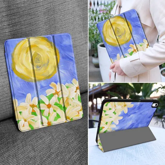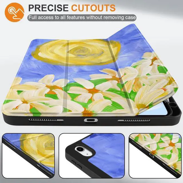 MEEgoodo Case for iPad A16 11th Generation 11 inch 2025/iPad 10th Generation 10.9 inch 2022, Tablet Cover with Trifold Stand + Pencil Holder + Auto Wake/Sleep + Soft TPU Back Cover, Summer Flowers