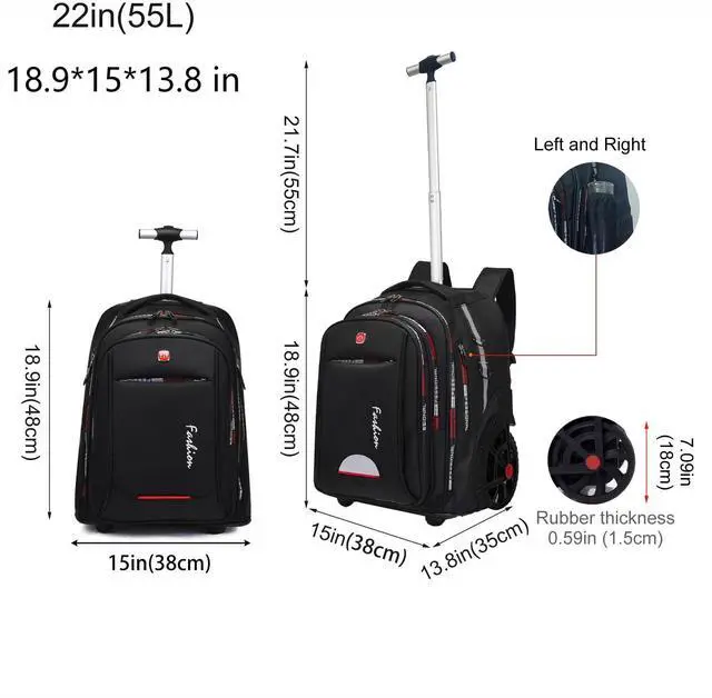 7 INCH LARGE WHEELED EASY CLIMBING: Rolling Backpack Have 18CM(7inch) Wider large Wheel, steady, heavy loading, saving labour and time, easy thru airplane aisles and stair, do not worry the wheels turned sideways, also do not worry wear off the backpack.
