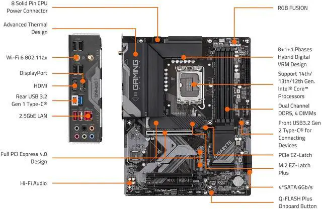 Gigabyte Z790 GAMING PLUS AX LGA 1700 ATX Motherboard provides users with ample connectivity options, support for gaming-level components, and solid thermal solutions suitable for a wide range of processors.
