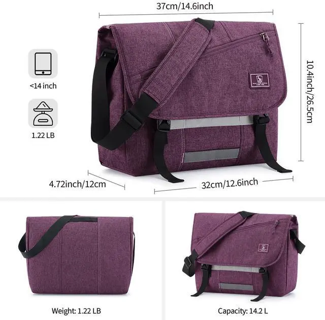 Messenger Bag with Laptop Compartment - Large capacity computer bag - fits documents, 14 inches laptop, 2 inch binder, wallet, mobile phone, power supply, glasses and etc. Separated padded laptop compartment provide protection for Laptop / Notebook