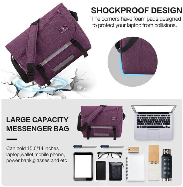 High Quality Messenger Bag - OIWAS messenger bag with adjustable shoulder strap and top handle can make you comfortable to carry. Water-resistant material will keep your laptop and other stuffs safe from rain, snow or dust. Reinforced stitching seams provides extra durability and not easy to break