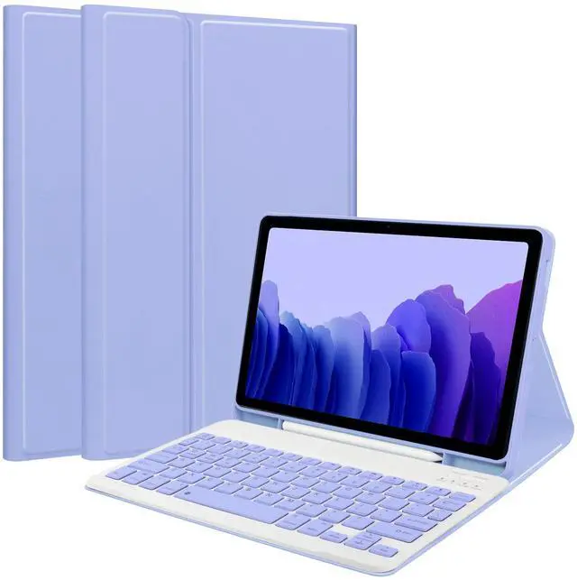 Keyboard Case for Samsung Galaxy Tab A7 10.4 inch 2022/2020, Magentic Protective Cover with Pencil Holder, Detachable Wireless Bluetooth Keyboard, Purple
