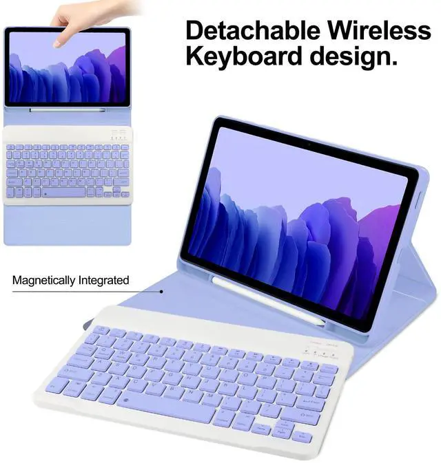 Keyboard Case for Samsung Galaxy Tab A7 10.4inch 2022/2020, Magentic Protective Cover with Pencil Holder, Detachable Wireless Bluetooth Keyboard, Purple