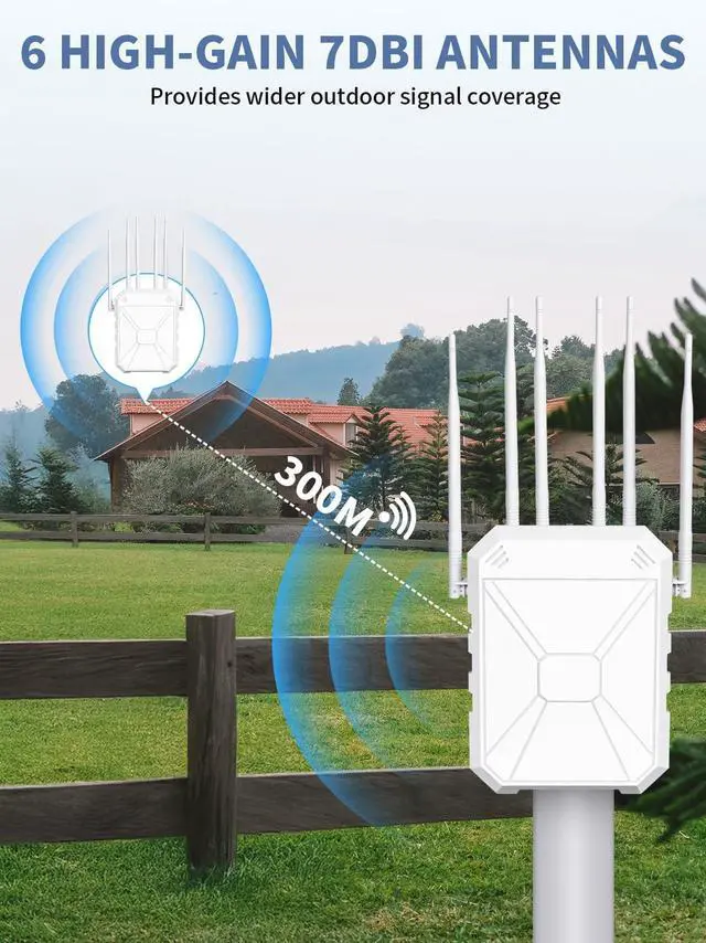 - Built with high-gain 6x 7d8i antennas, this outdoor long-range WiFi extender delivers stable signals over wide open areas. Whether you need WiFi for barns, garages, detached buildings, or outdoor cameras, this long-range WiFi repeater keeps every corner connected.