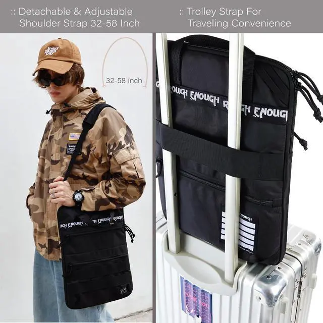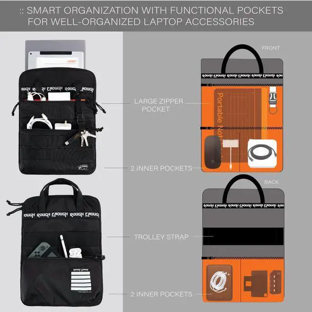 Rough Enough 16 Inch Laptop Sleeve Case Bag for Dual Tablet Storage with Accessory Pocket Handle Shoulder Strap Outdoor Travel Tactical Cordura Black