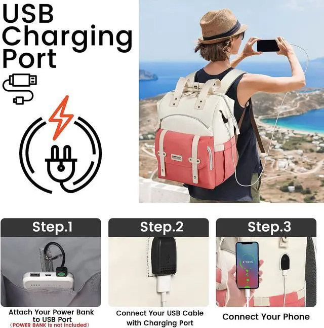 [Wide Open Design & USB Charging Port]:The main compartment adopts a wide-opening design,spacious and strong accommodating capacity which is easy to organize and access.Built-in connect internal USB cable, then let your charging cable insert external USB port to connect your electronic device, It is more convenient to charge your phone,when you walking (POWER BANK AND EXTRA CORD ARE NOT INCLUDED )
