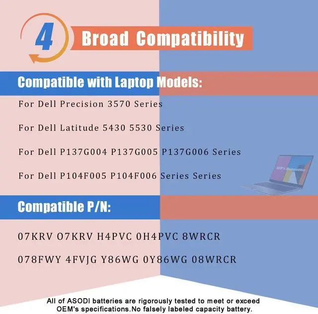 07KRV Battery replacement for 07KRV O7KRV H4PVC 0H4PVC 8WRCR 078FWY 4FVJG Y86WG 0Y86WG 08WRCR Battery