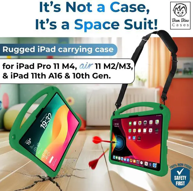 Case Design: Crafted for iPad Air 11/iPad Pro 11/iPad 11/iPad 10.9; case for kids with shock-absorbing foam & built-in screen protector against drops, screen damage; practical adjustable shoulder strap with safety release ^^ All