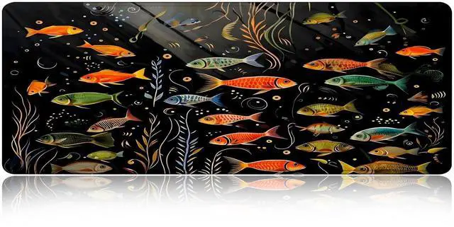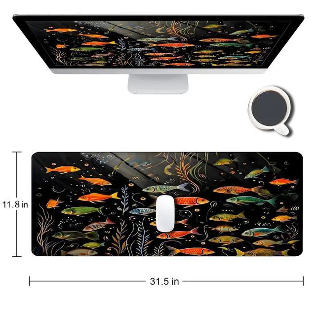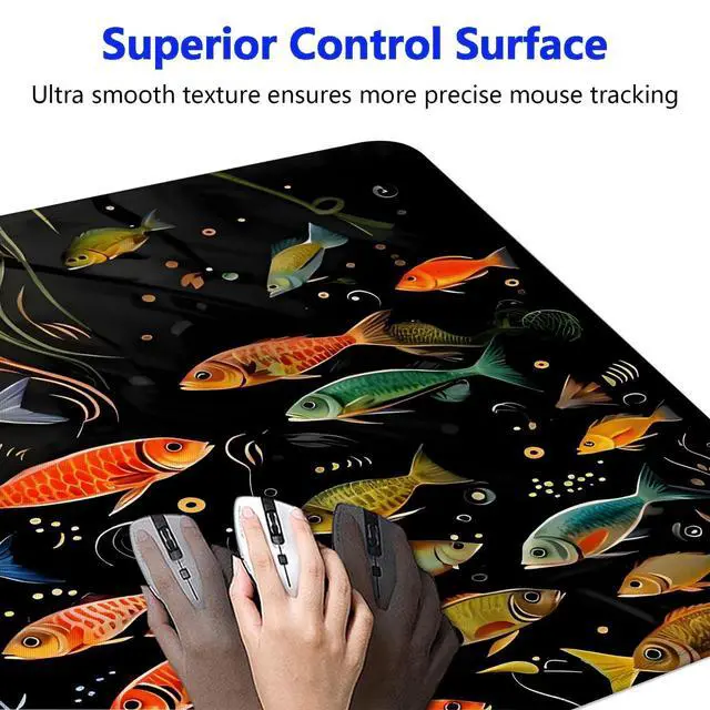 Large Gaming Mouse pad,Small Fish Red Grey Watercress Anti Slip Rubber Base Mouse pad, Suitable for Computer, Laptop, Office Desk Accessories
