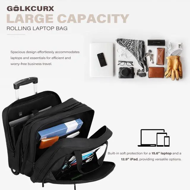 Versatile Detachable Telescopic Handle: The rolling laptop bag features a detachable telescopic handle with a Velcro-backed fabric on the back for added durability and flexibility. This versatile handle allows you to seamlessly switch between handheld and wheeled modes, making it convenient for any situation. The maximum length of the telescoping handle: is 20.47 inches ^^