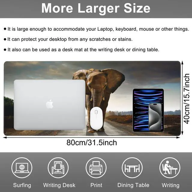 Mouse Pad, Large Walking Elephant Desk Mat, Extended Non-Slip Gaming Keyboard Mousepad Desk Pad, Thick Stitched Edges Waterproof Mouse Mat 31.5"x15.7" (Beautiful Natural Landscape)