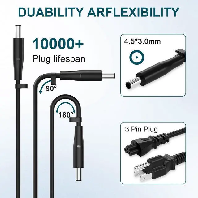 • Compatible with 130W 4.5mm laptop charger , 130W 4.5mm ac adapter , 130W Vostro laptop charger , Xps 15 laptop charger , Precision charger