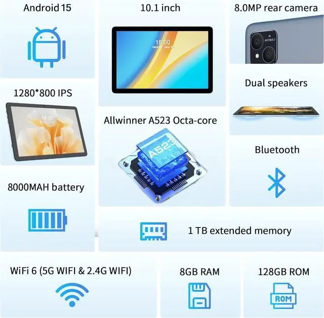 [Android 15 Tablet with Case ] - VOLENTEX TAB11 10 inch tablet comes with the latest Android 15 OS, 4GB RAM(+12GB Expand), 128GB Storage - a micro SD card slot (1TB Expandable). The powerful and energy-saving Octa-core 64 Bit Processor and 5Ghz WiFi & WiFi6 access, makes quicker app launch, smoother videos and great overall performance. An Extra Leather Case does come with TAB11 Tablet PC in the BOX