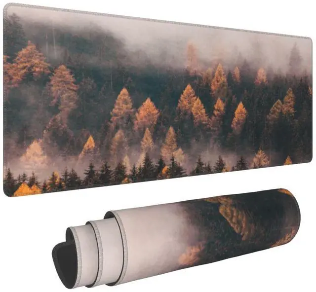 Nature Forest Gaming Mouse Pad, Tree Jungle Woodland Large Extended Desk Mat 11.8X 31.5 inches with Non-Slip Base & Stitched Edges, Waterproof Desk Mat for Office, Home, Laptop, Computer Keyboard