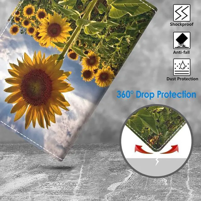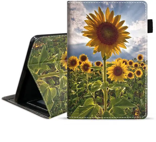 WEUIUJKILO Case for All-New Kindle Fire HD 10 & Fire HD 10 Plus Tablet (11th Generation, 2021 Release) - Slim PU Leather Stand Cover with Auto Sleep Wake, Sunflowers