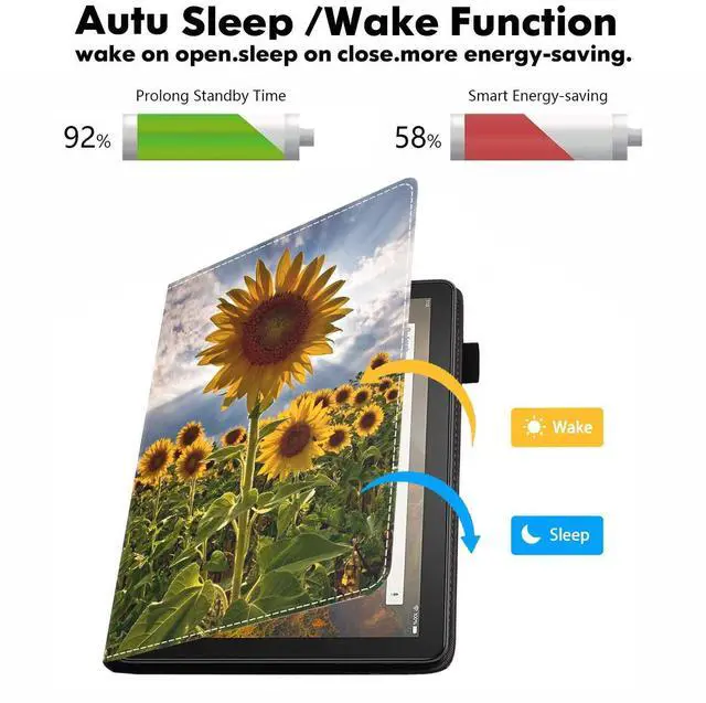 Auto Wake/Sleep- Built-in magnetic strip, automatically wakes or puts your tablet to sleep when the lid is opened and closed. Protects and extends battery life.