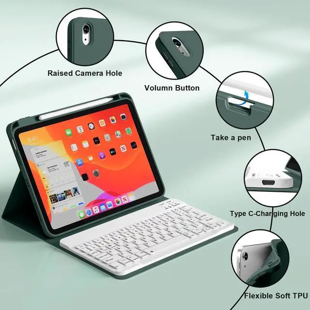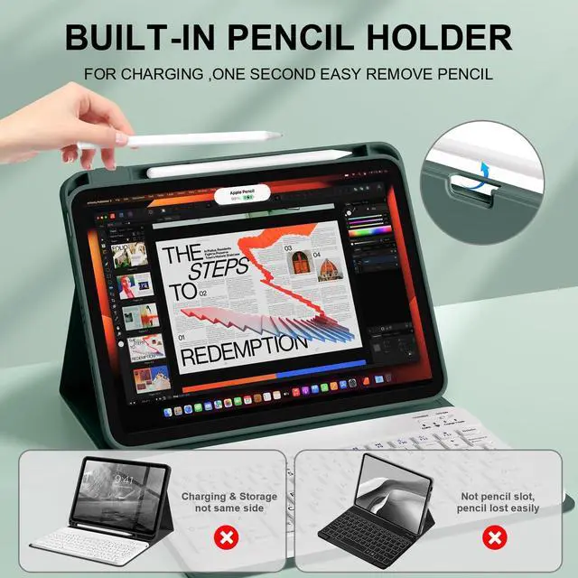 Right Side Pencil Holder]: The iPad Air 11-inch Keyboard Case has a convenient built-in pencil slot on the right side for charging, easy storage and access to your pencils. Effectively prevents falling, reducing the possibility of losing your pencil (Apple Pencil not included).