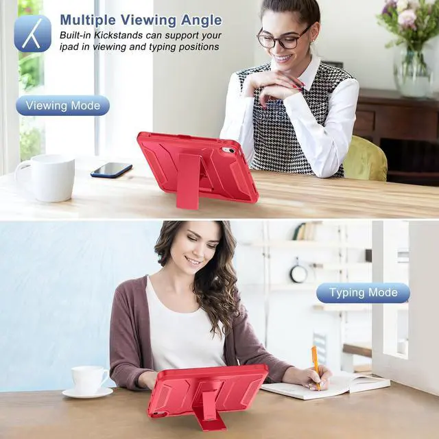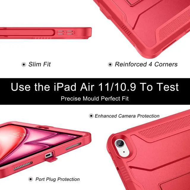 Generation 2020 (Model number: A2316, A2324, A2325, A2072). Please kindly check the model number A*** at the back of the tablet or Setting before purchase ^^ Rugged Armor Shockproof ProtectionMulti-layered hard PC back and flexible TPU bumper provide your iPad Air 11 and iPad Air 5/4 strong protection against drops, bumps, and impacts, also easy to install ^^ Built-in Screen ProtectorPrevents your New Apple iPad Air 11 Inch 7th/6th Gen & iPad Air 10.9 Inch 5th/4th generation screen from scratches without compromising sensitivity and provides full protection ^^ Precise cutoutsPrecise cutouts and design allow easy access to all ports, sensors, speakers, cameras without removing the case. Fully supports Pencil Pro/2nd Gen Pencil magnetic charging and Pencil (USB-C) wireless attach to keep your Pencil securely ^^ Built-in KickStandThis case for iPad Air 11 Inch & iPad Air 5th/4th Generation 10.9 Inch functional pop-out kickstand with dual stand angles for easily enjoying movies and better working. FREE YOUR HANDS