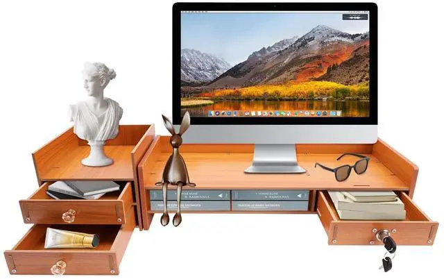 This monitor stand riser with drawers is designed to optimize both comfort and organization. By raising your screen to eye level, it promotes ergonomic posture while also providing smart storage for office essentials. Its sturdy build and stylish wood finish make it a perfect addition to any office, home workspace, or dorm desk. KEY FEATURES